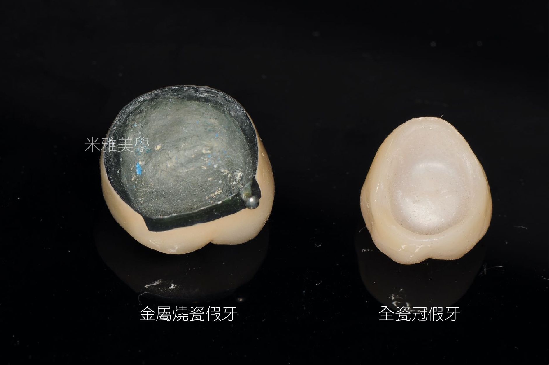 假牙大致可分為兩種:傳統金屬燒瓷假牙 與 全瓷冠假牙。